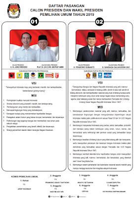 Visi dan misi para kandidat RI 1 dan RI 2 itu pun telah didaftarkan oleh masing-masing pasangan calon ke Komisi Pemilihan Umum (KPU) pada Sabtu (22/9/2018) lalu sebagai salah satu persyaratan untuk mengikuti kompetisi Pilpres 2019. Pasangan capres-cawapres nomor urut 01 Jokowi–Ma’ruf mengusung visi “Terwujudnya Indonesia maju yang berdaulat, mandiri, dan berkepribadian berlandaskan gotong royong”.